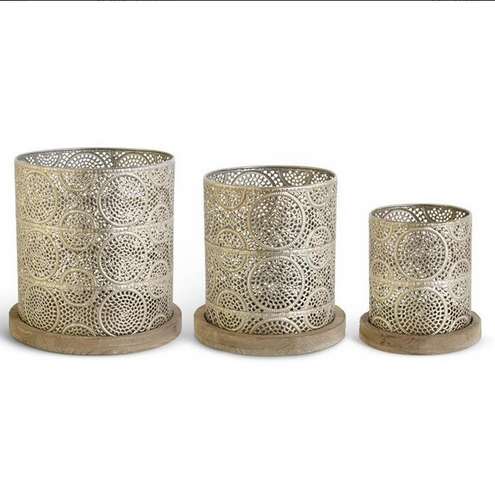 Gold Metal Mesh Lanterns w/Glass Hurricanes Item #: 15525A