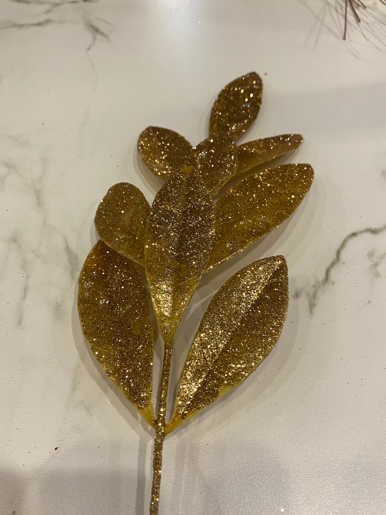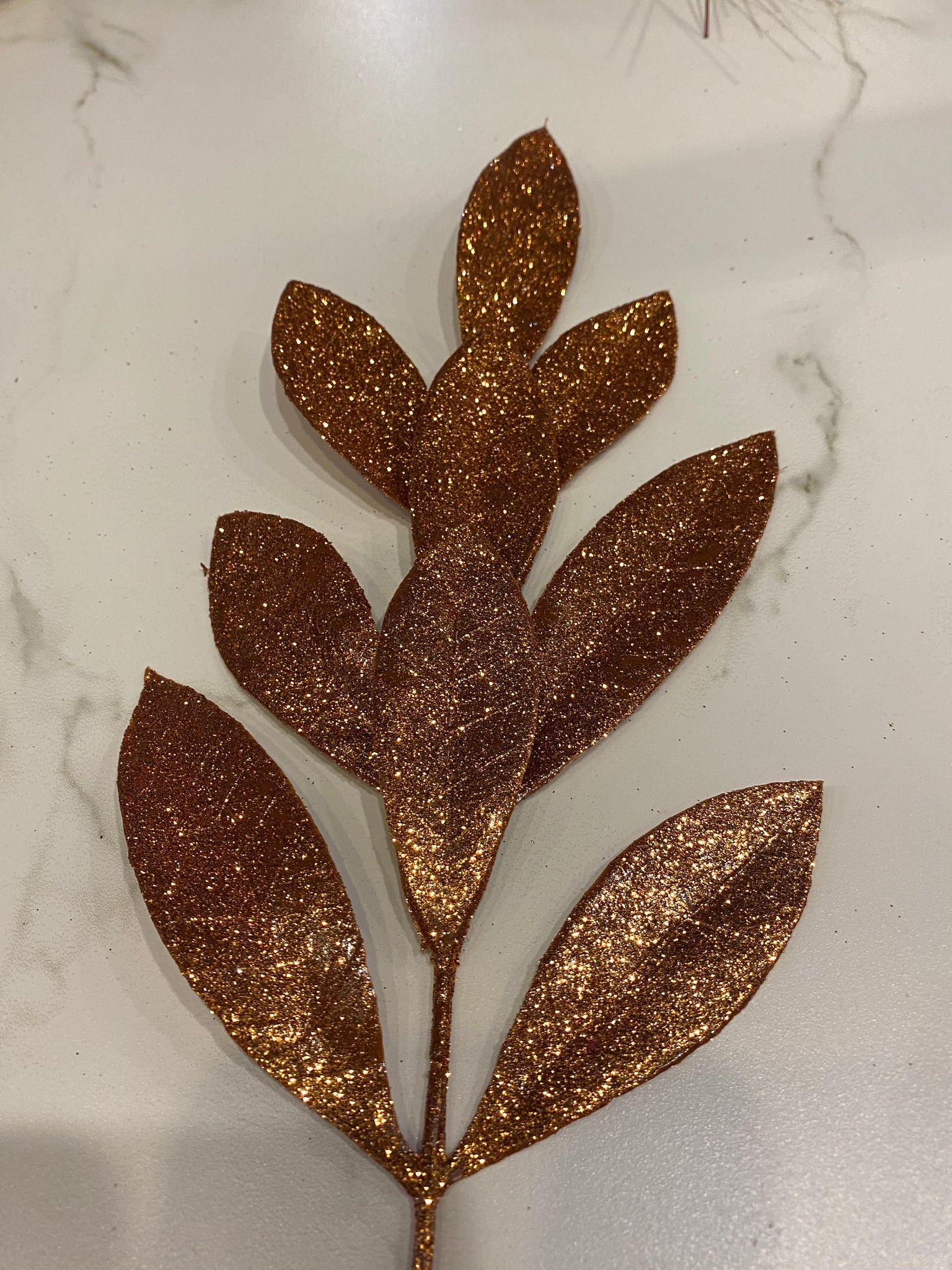 Add a touch of sparkle to any arrangement with this Glitter Oval Leaf Spray. This spray features realistic-looking glitter-dusted leaves to add shine and texture to your design. Perfect for wedding bouquets, centerpieces, and more!